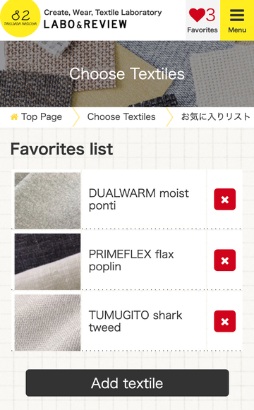 If you find a textile you are interested in, tap the "♡ Add to Favorites List" button at the top of the page or in the middle to add it to your Favorites.