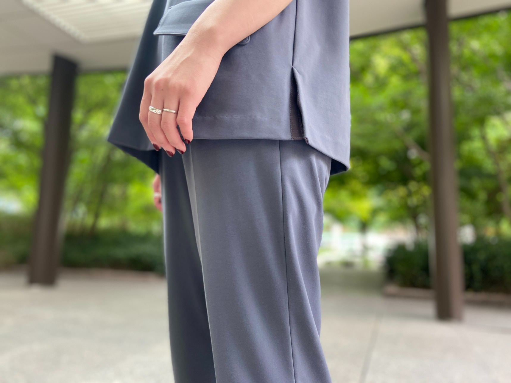 パンツは適度なゆとりを入れて、ラクチンでもパジャマっぽく見えないようキレイ目に。