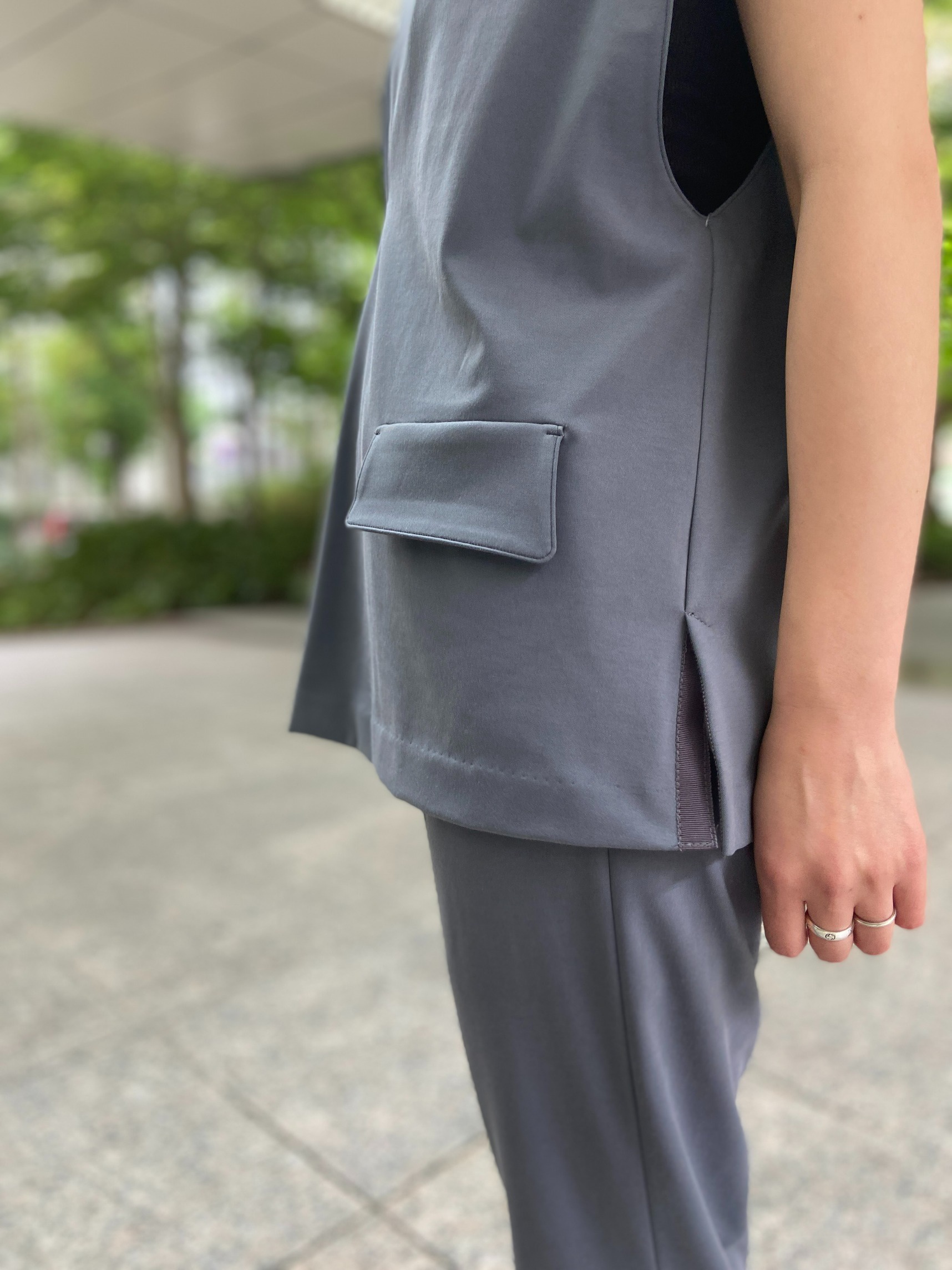 スリットを入れて後ろを長めに。着るだけでバランスよく見えるシルエットに。