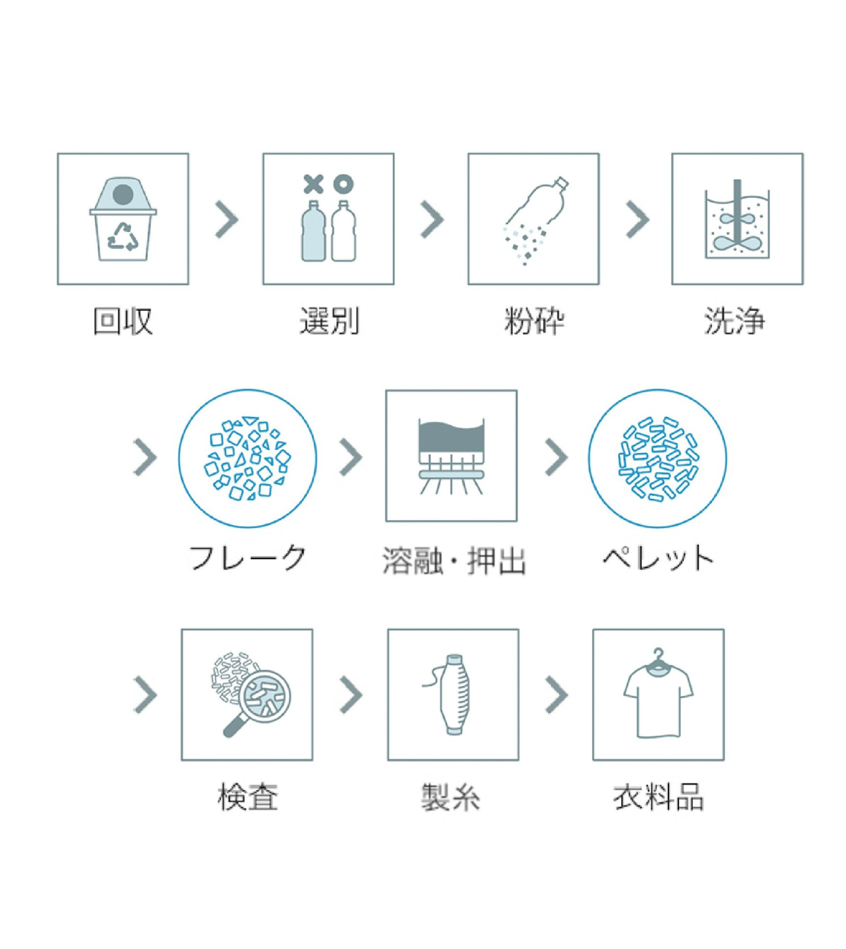 目に見えない分、信頼性が大切なリサイクル繊維。&+®はフットプリントによりリサイクル原料が正しく使用されているか識別できるため安心。また、『洗って捨てる、ラベルは剥がす』など日本人の生活習慣により、高品質な使用済ペットボトルを入手出来、原料に使用しています。