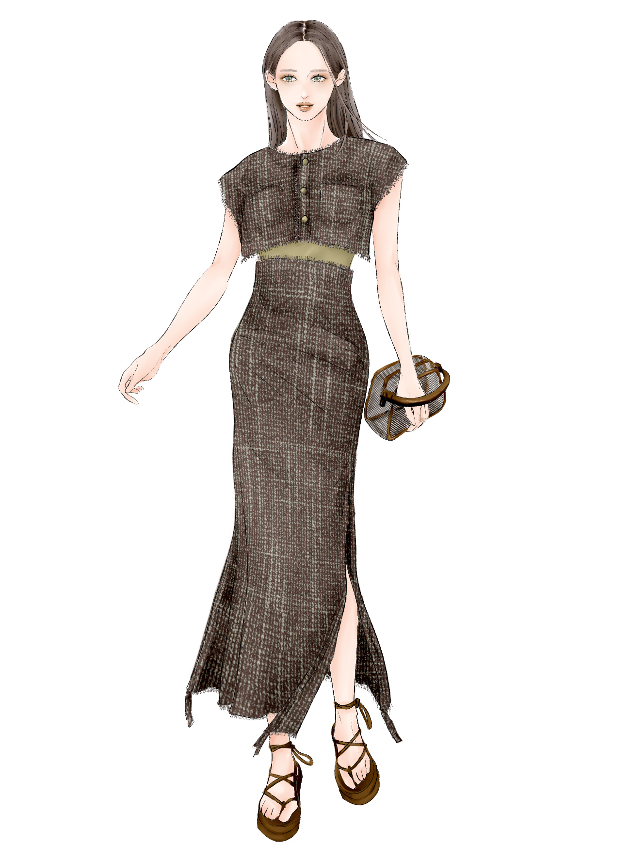 古いものヘの憧れ、アナログな時代の手の込んだモノづくり、その美しさはいつの時代も変わらない。テキスタイルの世界でそれを最も体感できるのはツイードです。今季注目のツイード素材。そのテイストを表現しながら、現代のファッションや暮らし、生産背景に合わせてアップデートした素材を作りました。