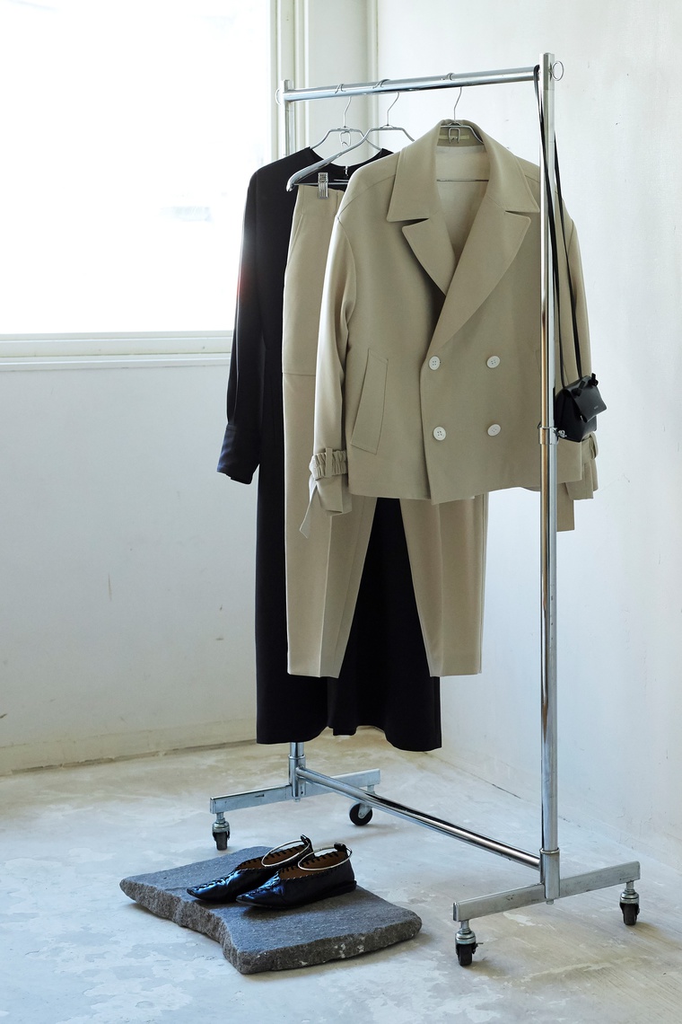 「世界中で売れてるダブルクロス」のテキスタイル。糸を撚糸することによる細かな表面感は、顔回りにきたときに光沢とマットさが丁度良く、着て...