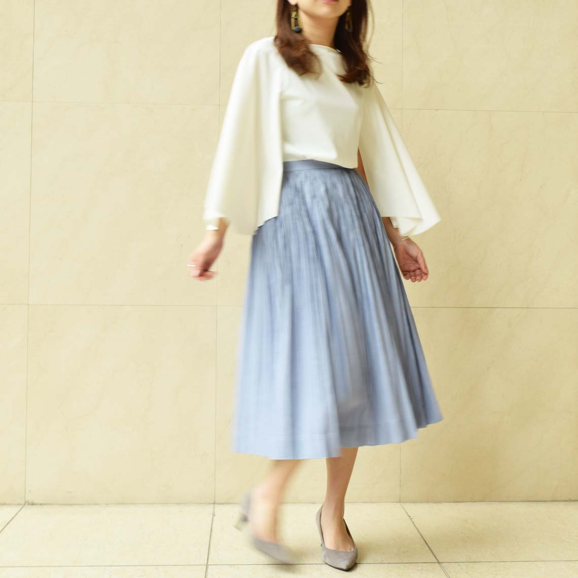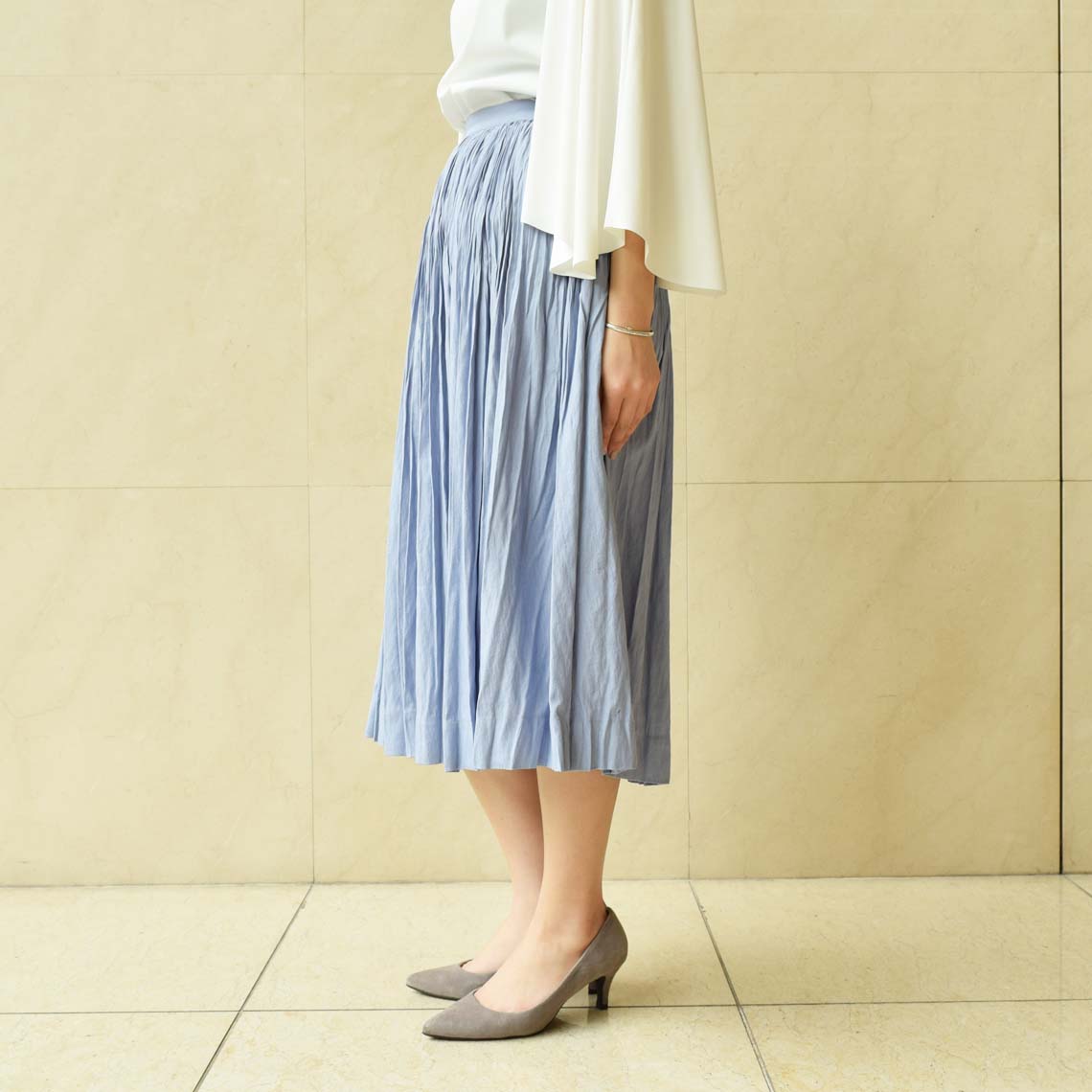 82-5725 ODESSEY chambray ナチュラルプリーツスカート <製品No.660>