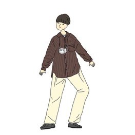 ファッションが大好きで、プライベートではイケてるサングラスをかけている姿が印象的な、みんなに愛されているあいあいです。推しテキスタイル