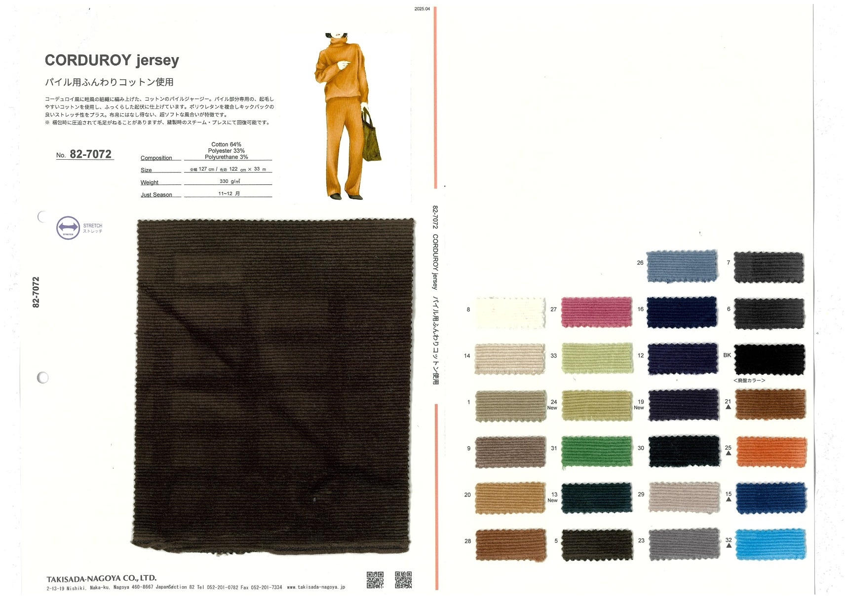コーデュロイ風に畦風の組織に編み上げた、コットンのパイルジャージー。パイル部分専用の、起毛しやすいコットンを使用し、ふっくらした起状に仕上げています。ポリウレタンを複合しキックバックの良いストレッチ性をプラス。布帛にはなし得ない、超ソフトな風合いが特徴です。