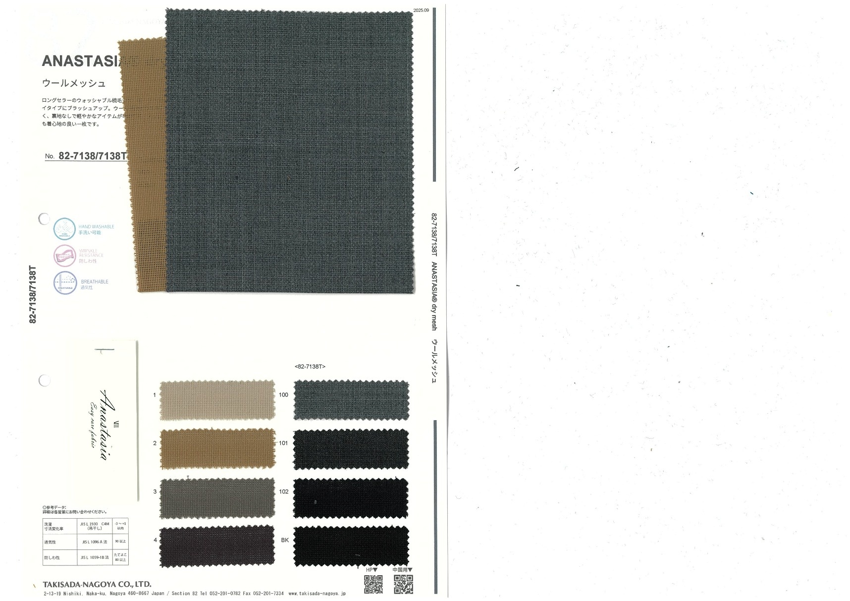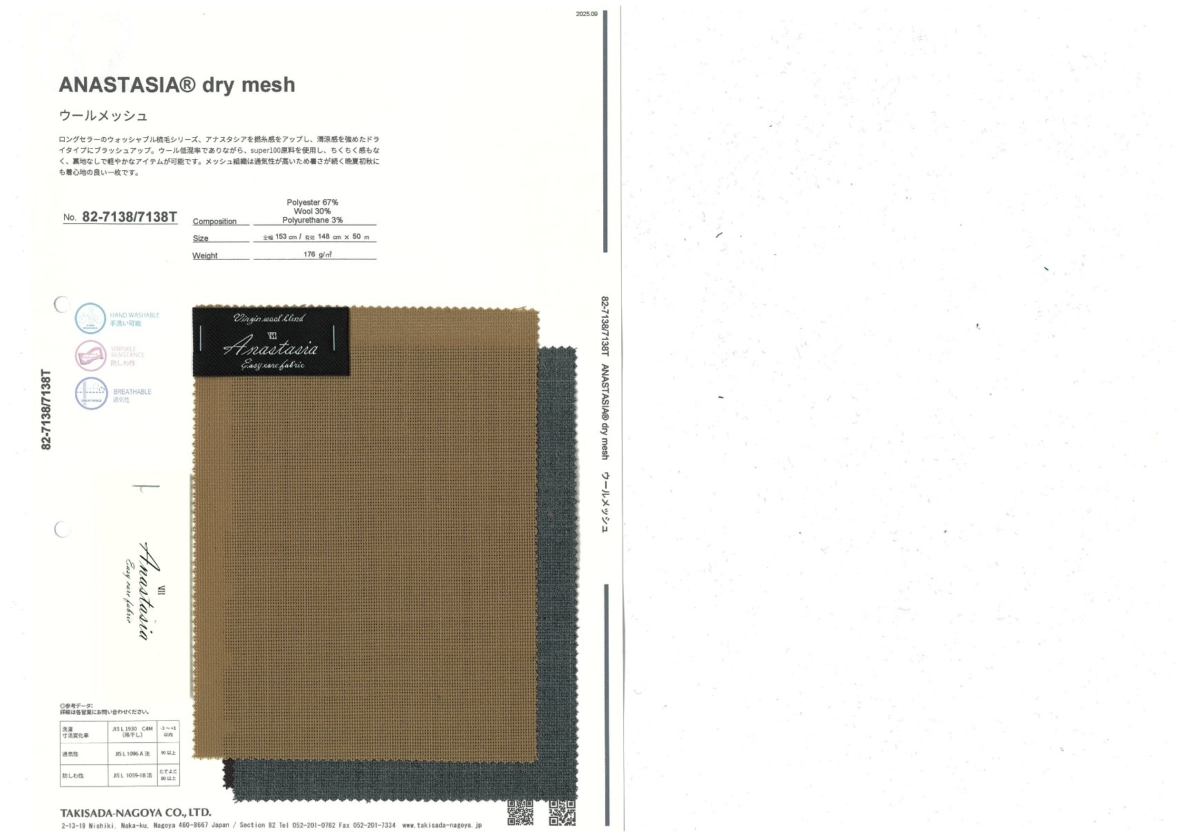 ロングセラーのウォッシャブル梳毛シリーズ、アナスタシアを撚糸感をアップし、清涼感を強めたドライタイプにブラッシュアップ。ウール低混率でありながら、super100原料を使用し、ちくちく感もなく、裏地なしで軽やかなアイテムが可能です。メッシュ組織は通気性が高いため暑さが続く晩夏初秋にも着心地の良い一枚です。