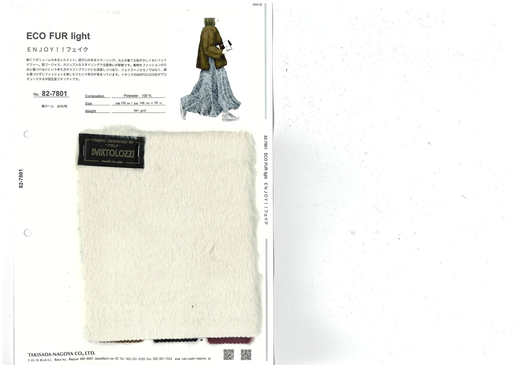 軽くてボリュームのあるシルエット。遊び心のあるカラーリング。大人が着ても恥ずかしくないフェイクファー。脱ゴージャス、カジュアルなスタイリングで全面使いが新鮮です。動物をファッションのために傷つけないという考え方がメゾンブランドにも浸透しつつあり、フェイク=にせものではなく、誰も傷つけずにファッションを楽しもうという気分が高まっています。イタリアのBARTLOZZ社がプロデュースする中国生産クオリティです。