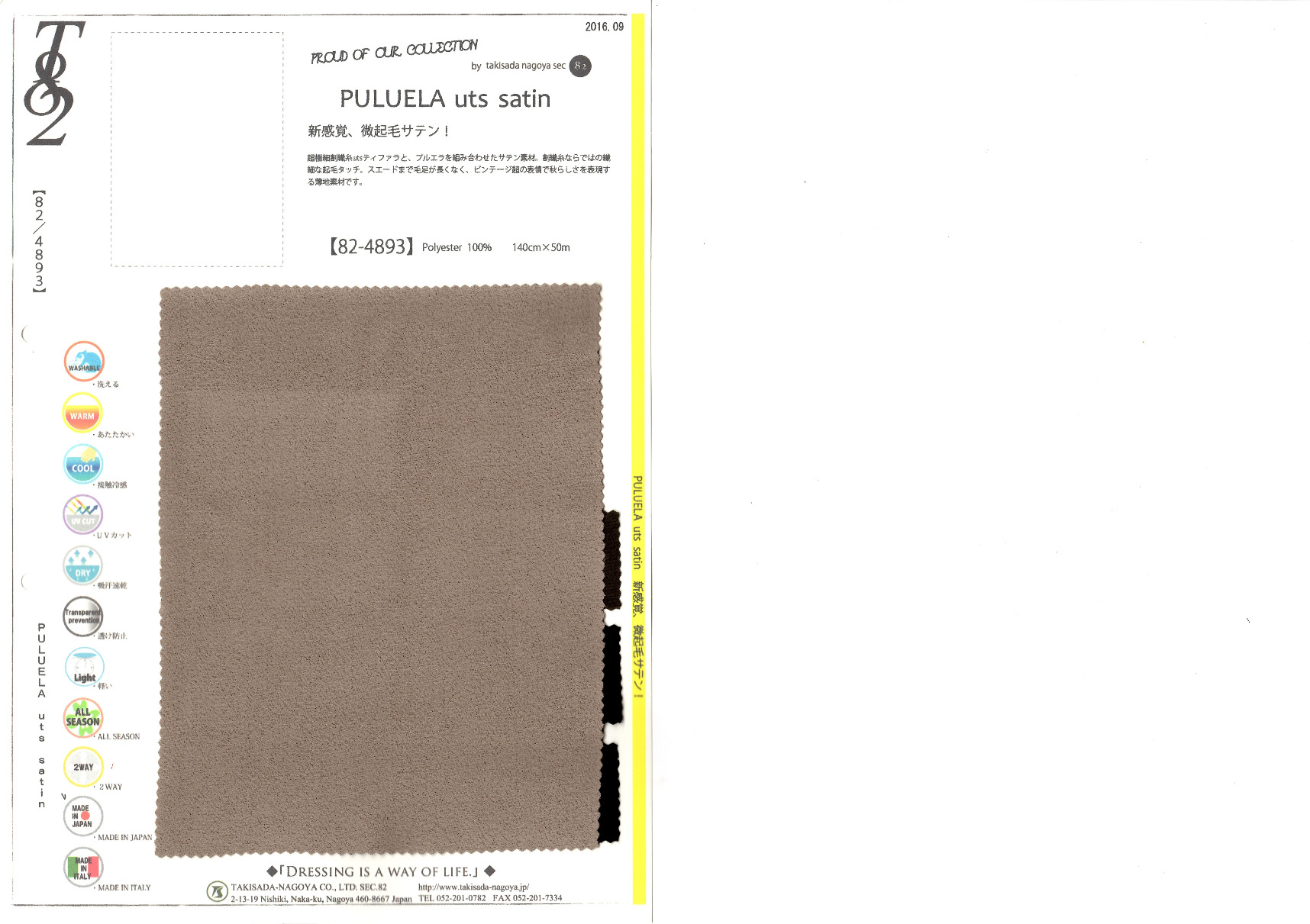 超極細繊維utsと、膨らみのあるポリエステルプルエラを使用したサテン素材。従来のスエードとは違う中肉合繊+微起毛タッチと適度なハリ感が、フォルムを作るのに丁度良い新しい素材です。暑い秋が長いけど、SSとはちょっとだけ差をつけたい、合繊ならこんな変化が可能です。