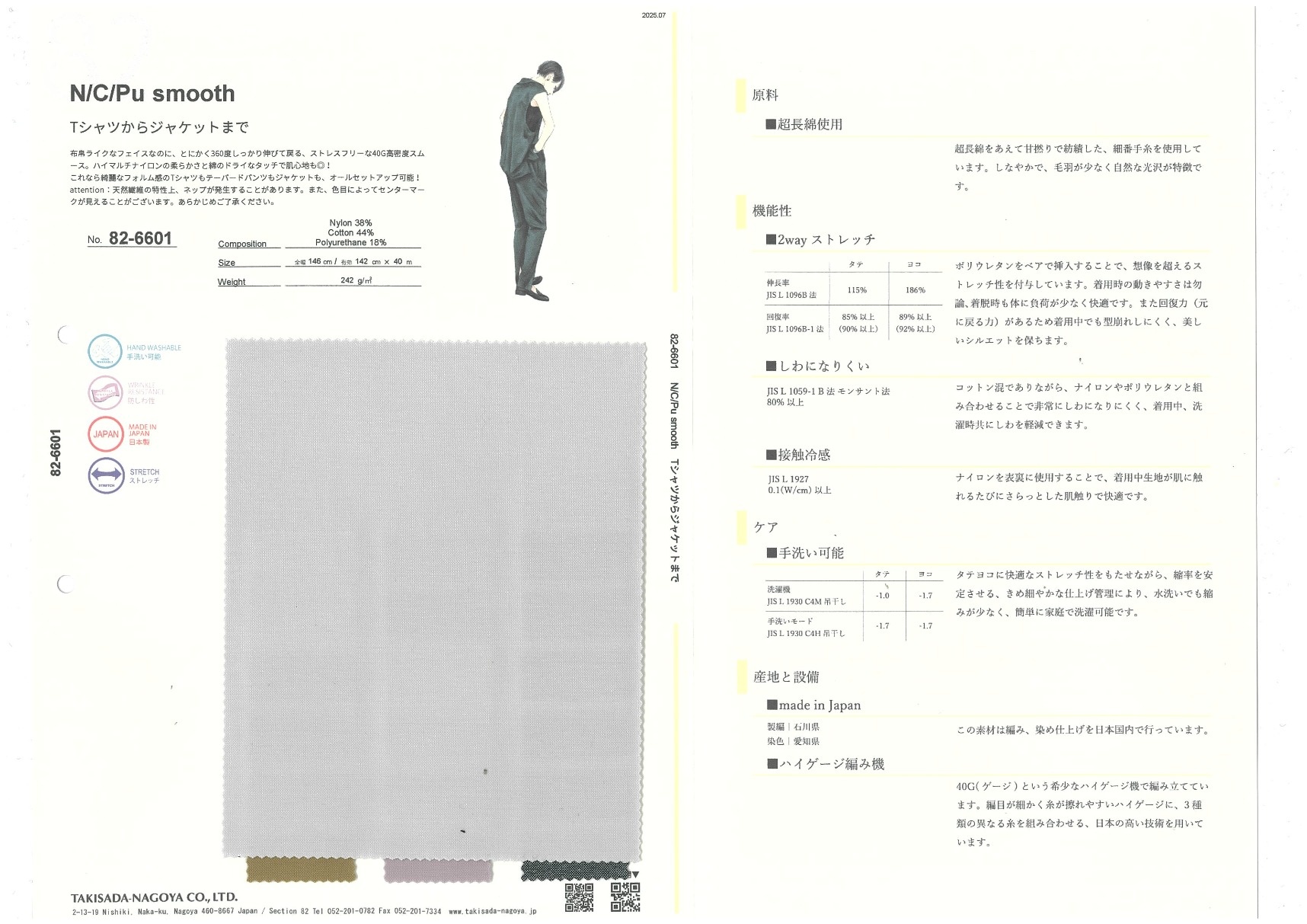 布帛ライクなフェイスなのに、とにかく360度しっかり伸びて戻る、ストレスフリーな40G高密度スムース。ハイマルチナイロンの柔らかさと綿のドライなタッチで肌心地も◎!これなら綺麗なフォルム感のTシャツもテーパードパンツもジャケットも、オールセットアップ可能!