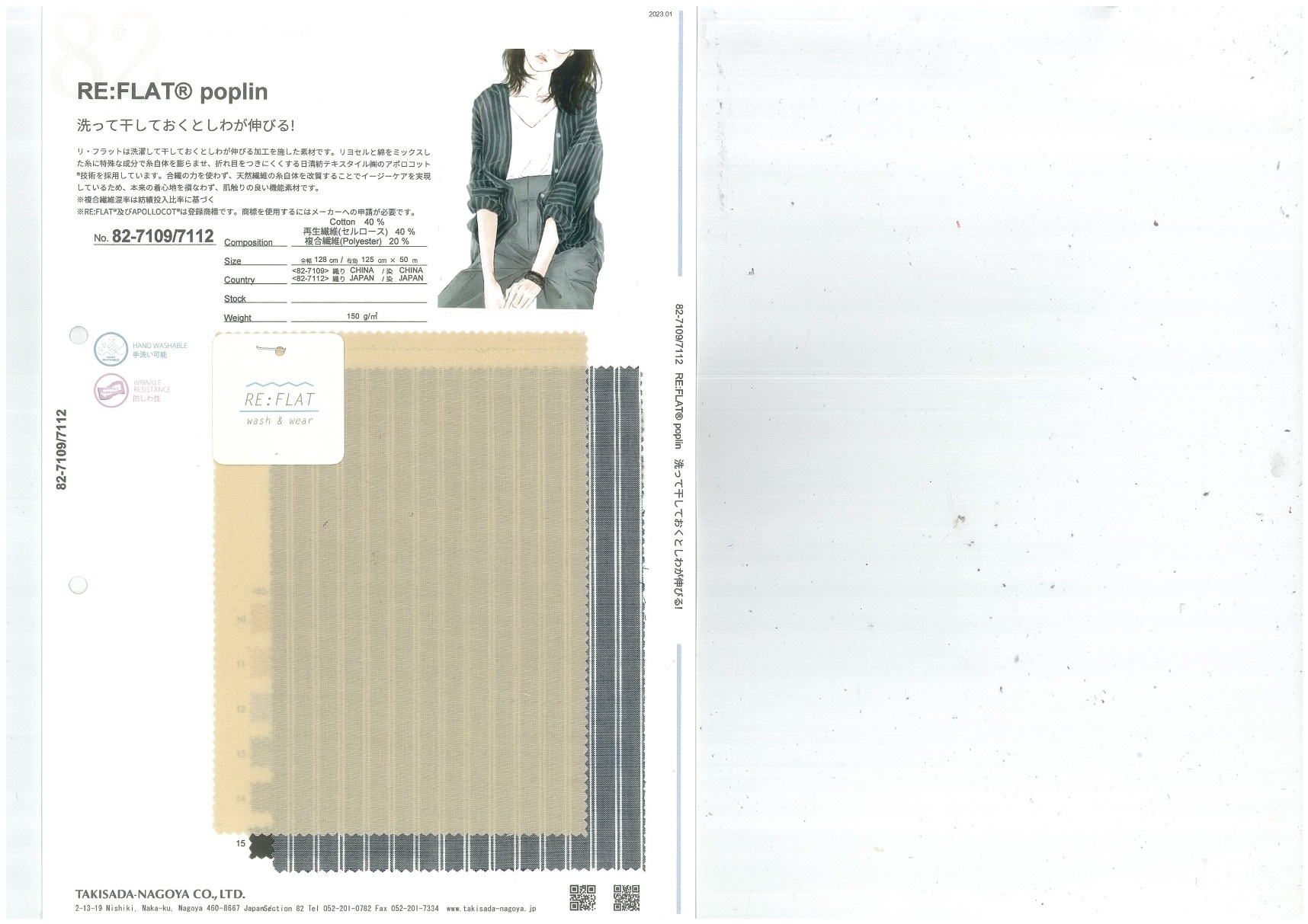 リ・フラットは洗濯して干しておくとしわが伸びる加工を施した素材です。リヨセルと綿をミックスした糸に特殊な成分で糸自体を膨らませ、折れ目をつきにくくする日清紡のアポロコット技術を採用しています。合繊の力を使わず、天然繊維の糸自体を改質することでイージーケアを実現しているため、本来の着心地を損なわず、肌触りの良い機能素材です。