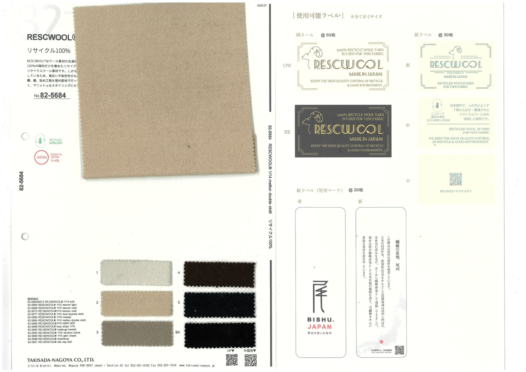 RESCWOOL®はウール素材の生産時に発生する生機の残反、残糸、耳と呼ばれる裁断くずなどウール100%の端材だけを集めたリサイクル100%のウール原料と、東レ㈱のリサイクルナイロンをあわせたリサイクルウール素材です。しかもそのリサイクルウール原料はsuper'100クラス相当の白のみを使用しているため、風合いや染色性のもバージンウールと見分けがつかない程のクオリティです。反毛、紡績、織、染め工程を尾州産地で行っています。コートに適した接結二重のメルトン仕上げは真冬も温かく、マニッシュなスタイリングにもマッチ。