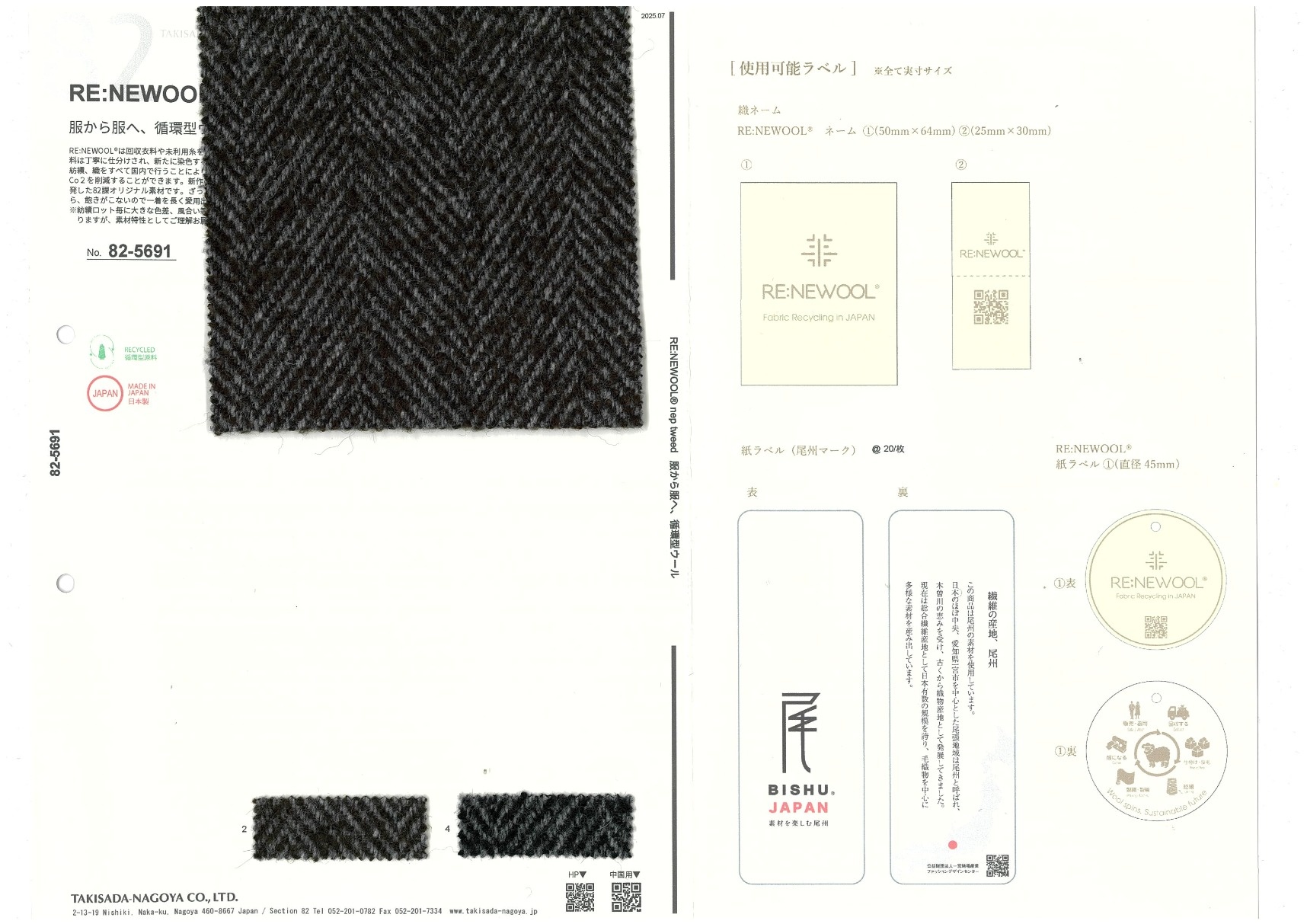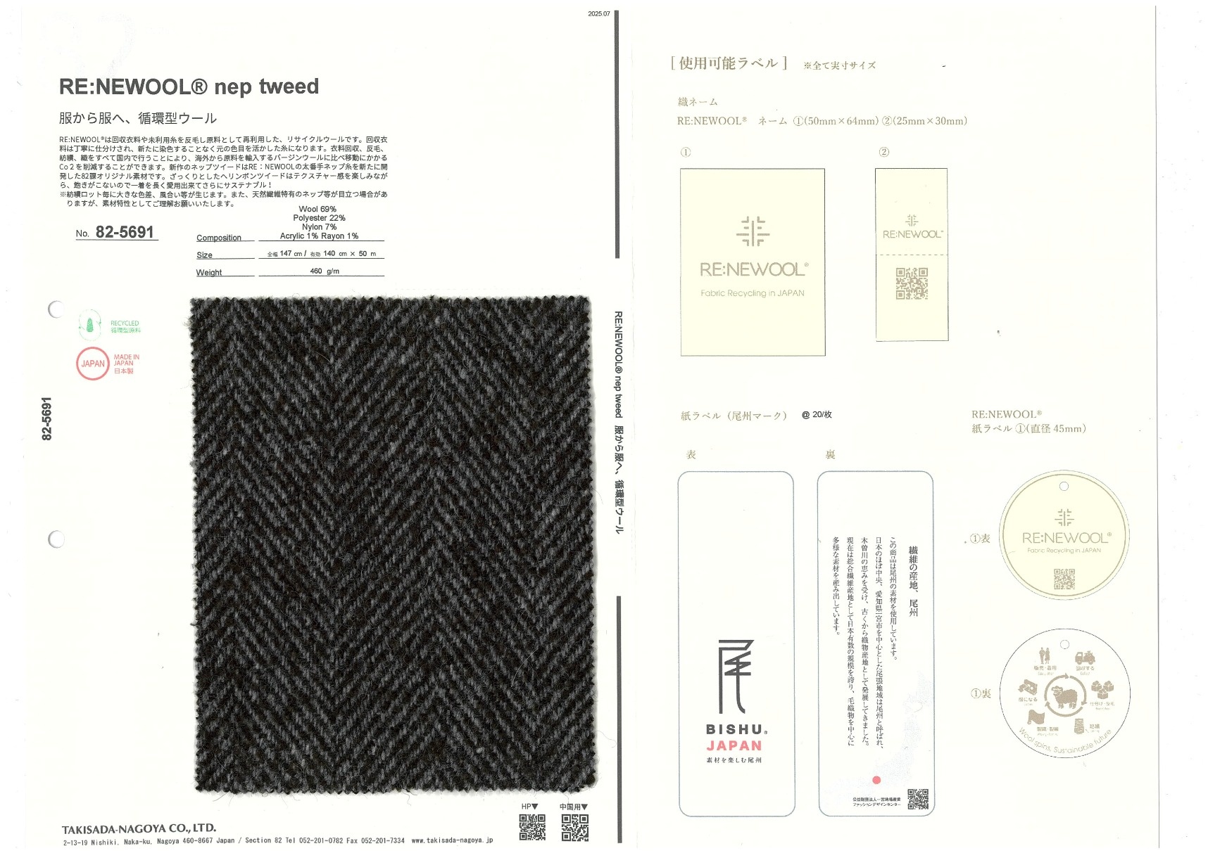 RE:NEWOOL®は回収衣料や未利用糸を反毛し原料として再利用した、リサイクルウールです。回収衣料は丁寧に仕分けされ、新たに染色することなく元の色目を活かした糸になります。衣料回収、反毛、紡績、織をすべて国内で行うことにより、海外から原料を輸入するバージンウールに比べ移動にかかるCo2を削減することができます。新作のネップツイードはRE:NEWOOLの太番手ネップ糸を新たに開発した82課オリジナル素材です。ざっくりとしたへリンボンツイードはテクスチャー感を楽しみながら、飽きがこないので一着を長く愛用出来てさらにサステナブル!