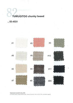 上品だけれど糸の表情感で決して堅苦しくなく、程よく華やかで印象付けもできる万能素材ファンシーツイードをTUMUGITO®で作りました。インポートツイードのような見た目と風合いを持ちながら、毎日着られるタフさを目指した1枚。特別なポリエステルの撚り杢スラブ糸を含めた2種以上の糸をいつもより太い番手で選択。甘く織ることで、糸の表情を殺さない魅力的なフェイスに。お家で洗えてしわにもならず毛羽立ちもしにくい頼もしさが嬉しい。プルオーバーのジレ・ベストやジャンパースカートなどにお勧めです。