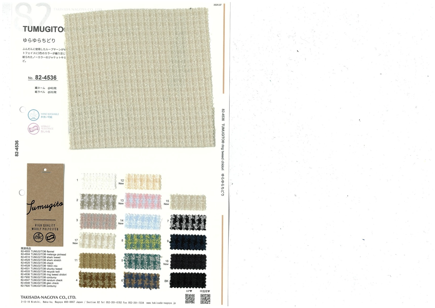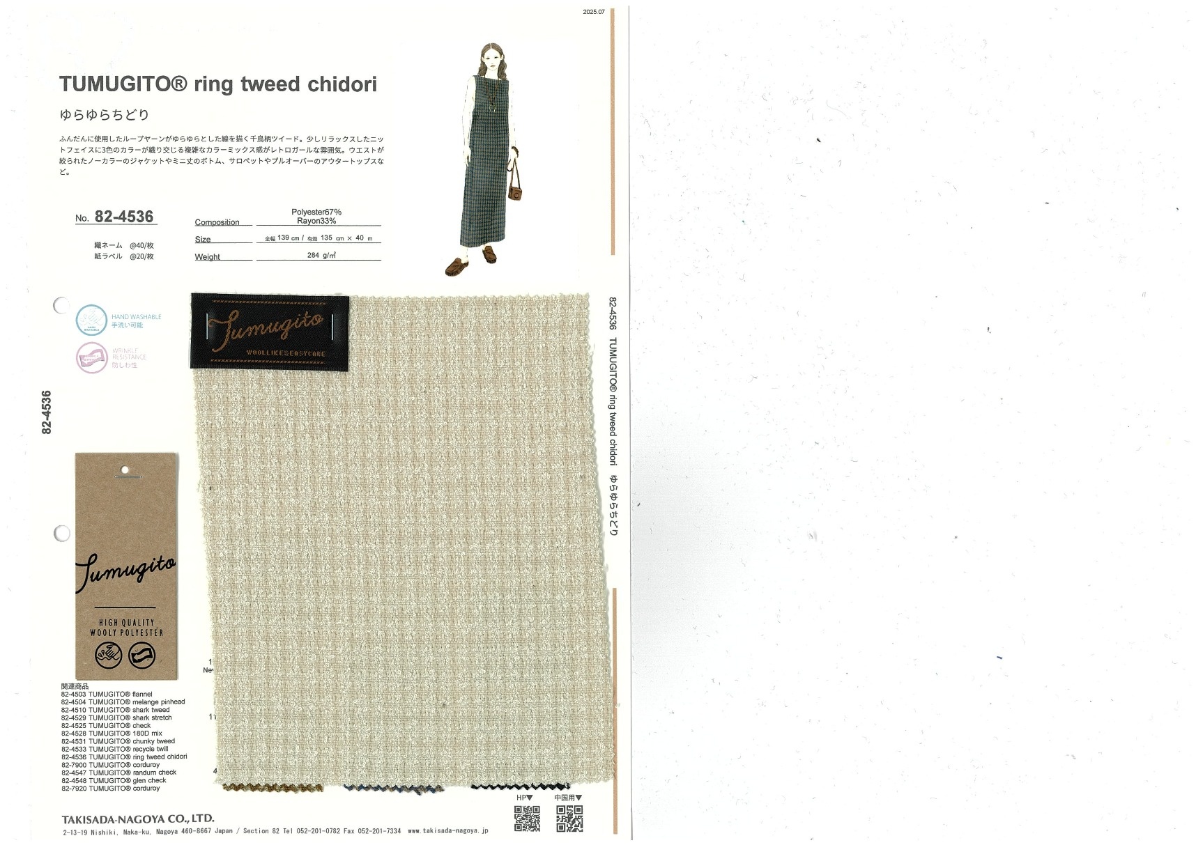ふんだんに使用したループヤーンがゆらゆらとした線を描く千鳥柄ツイード。少しリラックスしたニットフェイスに3色のカラーが織り交じる複雑なカラーミックス感がレトロガールな雰囲気。ウエストが絞られたノーカラーのジャケットやミニ丈のボトム、サロペットやプルオーバーのアウタートップスなど。